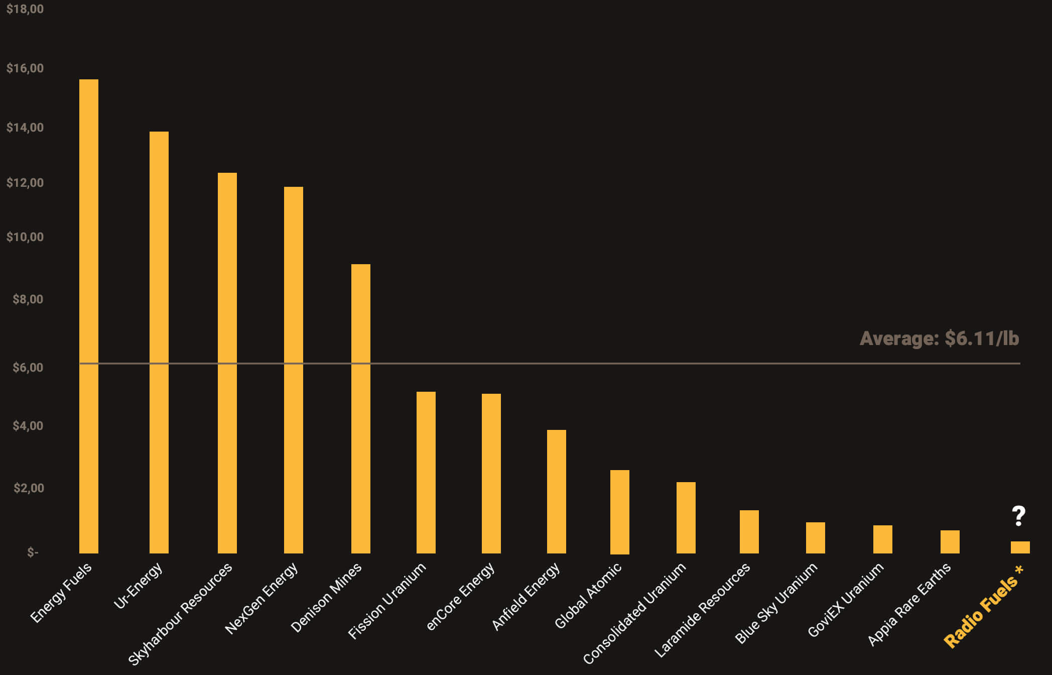 Compared to its peers, Radio Fuels' Eco Ridge asset provides significant upside when compared to other projects on a $/lb basis.